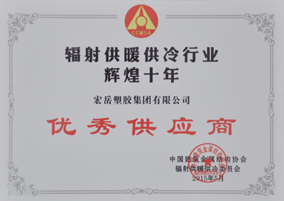2015年5月15日,中国辐射供暖供冷委员会十周年庆典在北京盛大举行。会上表彰了一批对辐射供暖供冷行业发展作出突出贡献的企业和个人,好博体育集团喜获中国辐射供暖供冷行业辉煌十年优秀供应商殊荣,好博体育塑胶集团有限公司张思良总经理荣获中国辐射供暖供冷行业功勋奖。