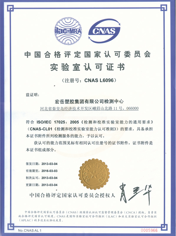 好博体育塑胶集团有限公司检测中心于2011年3月导入国家试验室认可体系,中心隶属于好博体育塑胶集团有限公司,拥有国内外先进的检测仪器和设备,全部为相关专业本科以上学历或工作时间超过10年的资深专业人员。自体系推行以来,2011年、2012年中心通过了两次的内审和管理评审,使体系运行不断完善,同时进行了认可委组织的维卡软化、拉伸和熔指的能力验证和测量审核4次,与塑料制品监督检验中心进行了交联度的实验室比对,通过能力验证和实验室比对,说明检测中心具备良好的检测能力,能够确保独立地、公正地对承检范围内的检测项目进行检测,检测数据准确,技术能力较高。