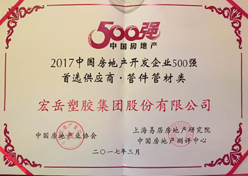 好博体育荣获“2017年中国房地产开发企业500强首选供应商品牌”