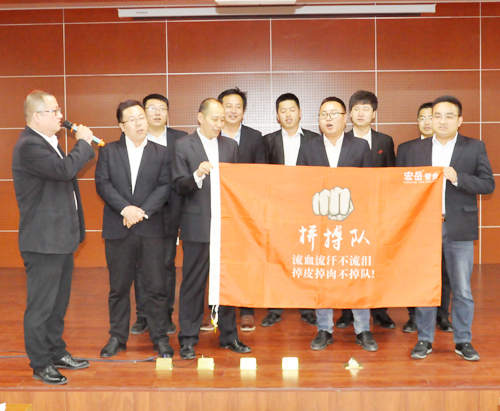 4月3日,好博体育集团营销誓师大会在营销中心热血开展! 全员参与,激情动员,好博体育销售精英们组成十个战队,并确立自己的队长、队名、队旗、队标及队呼。在大会上各战队“亮队型、展风彩、表决心”,队员们慷慨激昂的表态发言,点燃了营销人员的满腔热情。