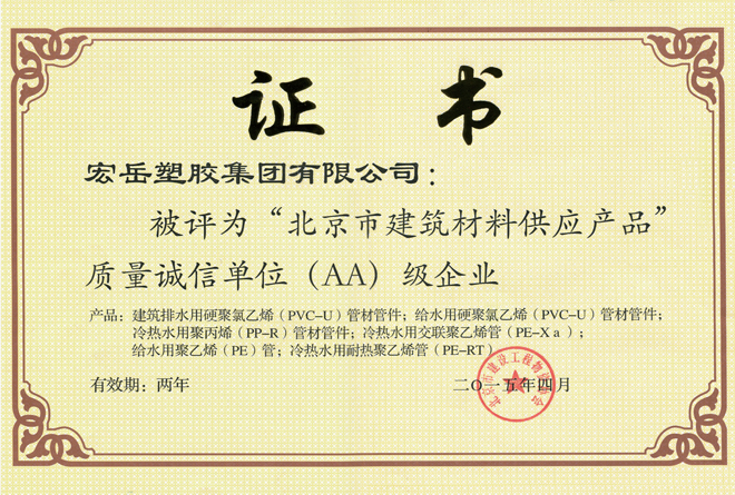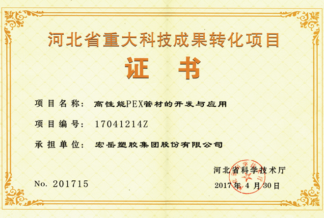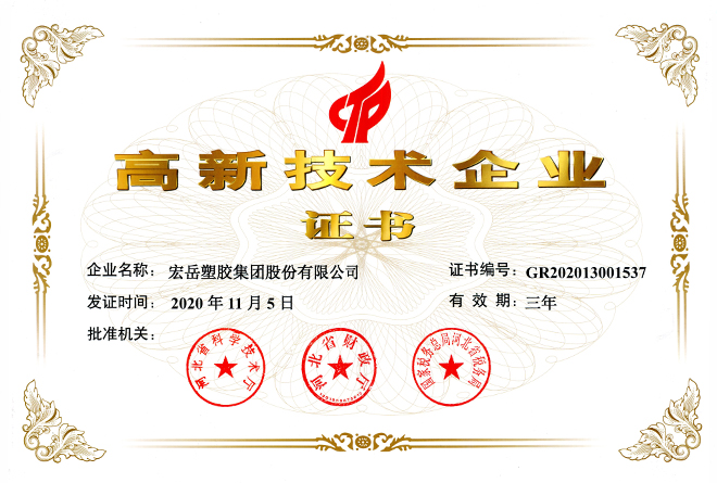 好博体育被认定为河北省高新技术企业,好博体育牌塑料管材管件被认定为国家免检产品。