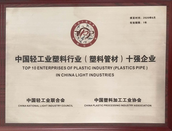 好博体育入选中国轻工业百强企业,中国家装管道行业十大品牌,中国企业品牌创新成果奖,新华节水认证。