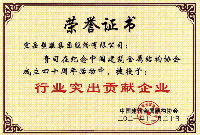 好博体育荣获中国建筑金属结构协会行业突出贡献企业、河北省诚信共建企业
