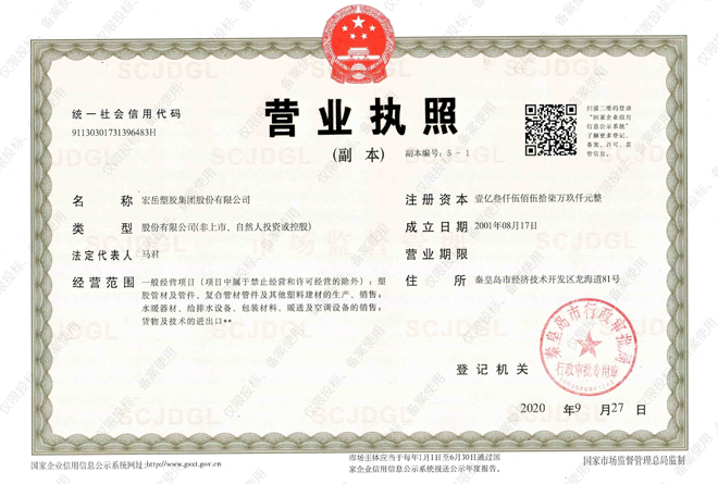 好博体育塑胶集团成立于2001年,是集科研开发、生产销售、设计安装、原料贸易为一体的管道系统服务商。集团总部坐落于秦皇岛经济技术开发区,下设秦皇岛开发区龙海道产业园、峨眉山路产业园、孝感六合产业园、云浮产业园、柬埔寨产业园,占地面积40万平米。