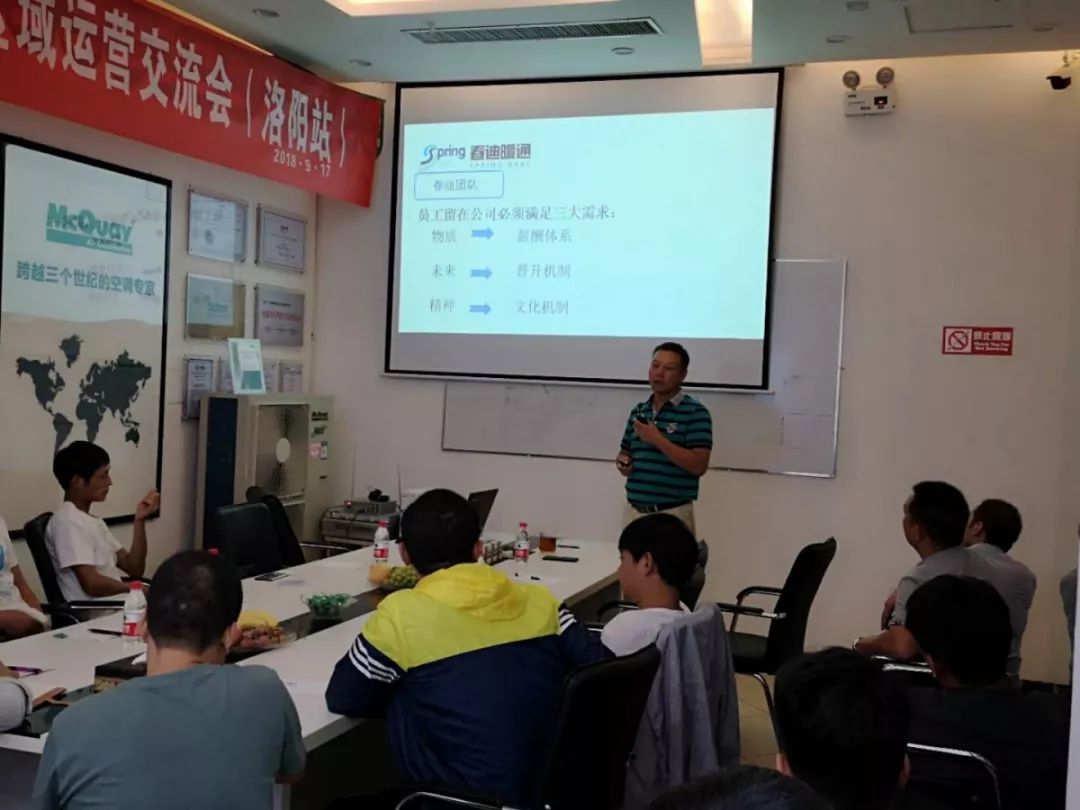 好博体育1+洛阳服务中心刘总,现场为大家分享了服务中心的市场运营情况及施工规范,包含:渠道建设、人员科学管理等方面的经验和见解及水电暖施工的管理流程等。