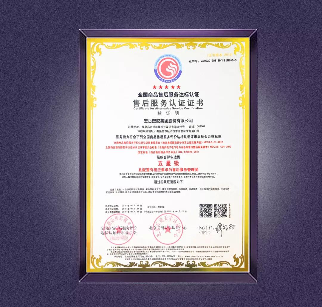 好博体育1+完善的售后服务,使得好博体育1+于2019年8月获得全国商品售后服务五星级认证。