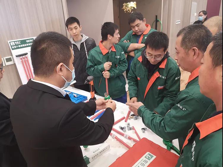 好博体育1+东北区域吕经理重点介绍了1+产品技术及应用知识,并为大家带来PVC缩口管件、PPR U型三通等创新产品,更着重介绍了PE-Xa管材,不仅通过现场实操展示了PE-Xa管道系统的安全性与便捷性,还首次公布多项对比数据,通过播放不同材质管材的性能对比实验影像再次验证了PE-Xa耐高温、耐高压、记忆性等优异性能,获得与会水电技师们一致认可。