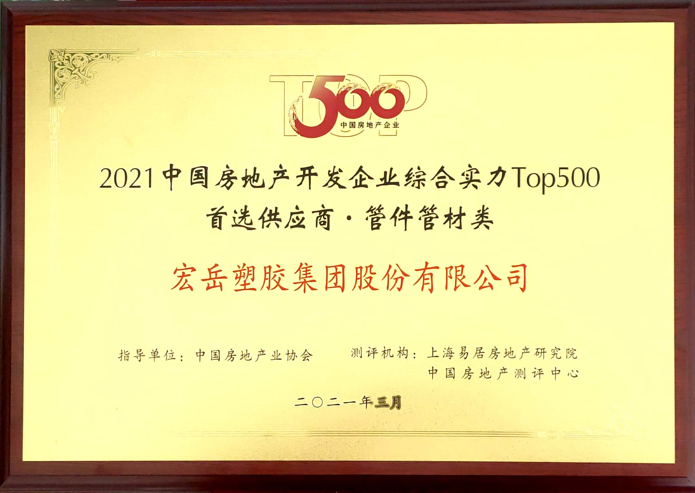 好博体育塑胶集团2014-2021连续8年蝉联中国房地产500强首选供应商品牌,品牌首选率荣登前五。