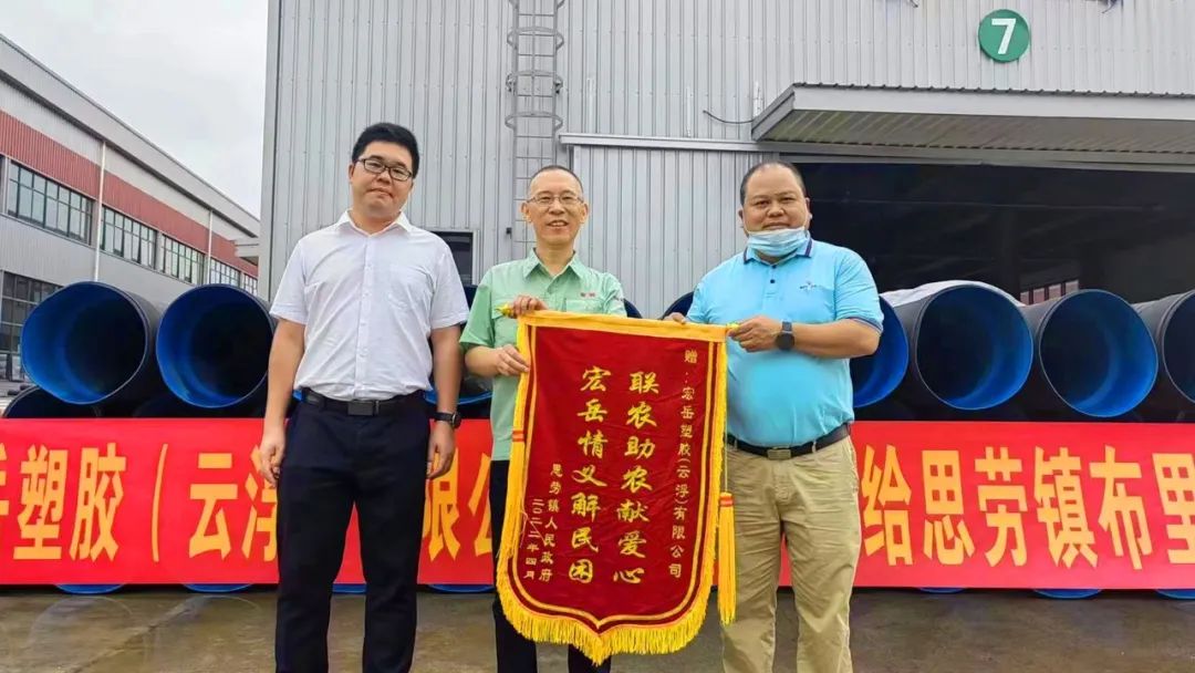 4月26日,好博体育塑胶(云浮)公司向云浮市思劳镇布里村委捐赠PE双壁波纹管,及时高效地帮助该村解决了农田灌溉改造项目急需的管道材料。