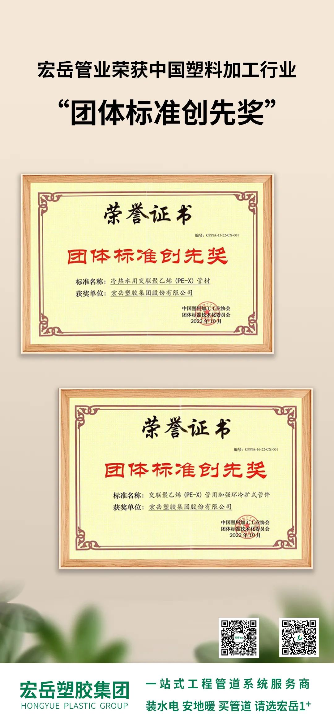 好博体育主导编制的《冷热水用交联聚乙烯(PE-X)管材》、《交联聚乙烯(PE-X)管用加强环冷扩式管件》两项团标,将产品及连接技术在专业的角度上给予了注解与规范,带动了行业新产品、新技术的推广和应用。