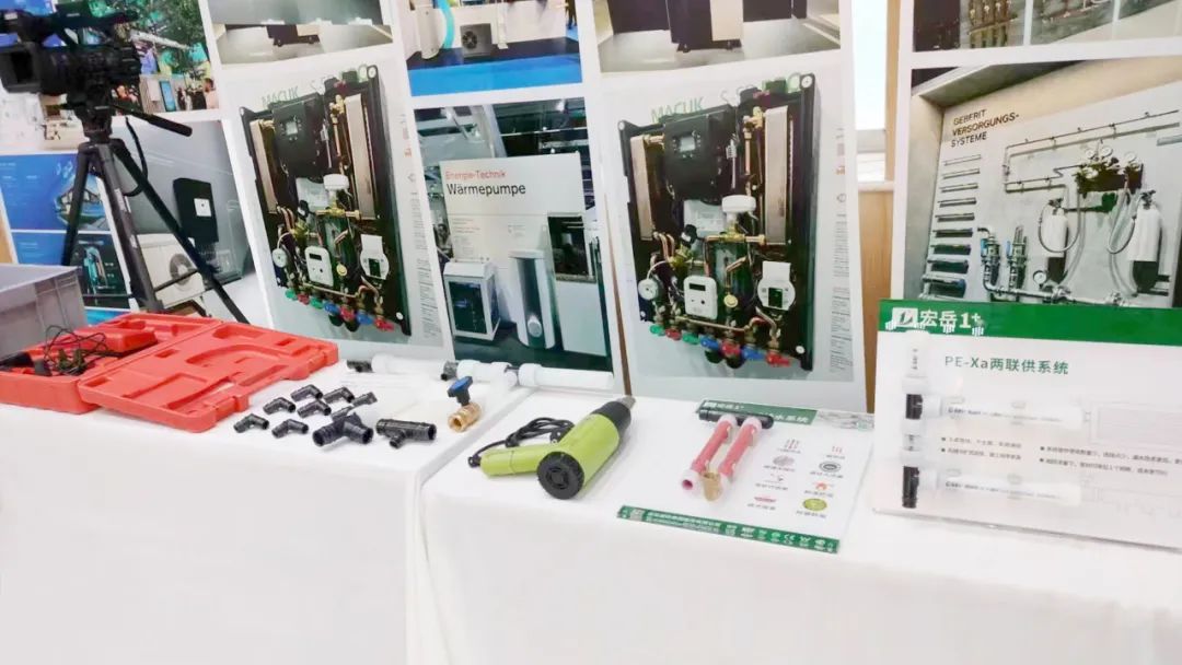 发布流程环节结束后,前来参会的行业领导、媒体及客户前往热泵装配式3.0工艺展示区进行参观,在现场技师的指导下,大家亲自实操试装,在简单快速上手的操作中体验到PE-Xa新工艺的高效、安全及在热泵安装交付中的突出优势。
