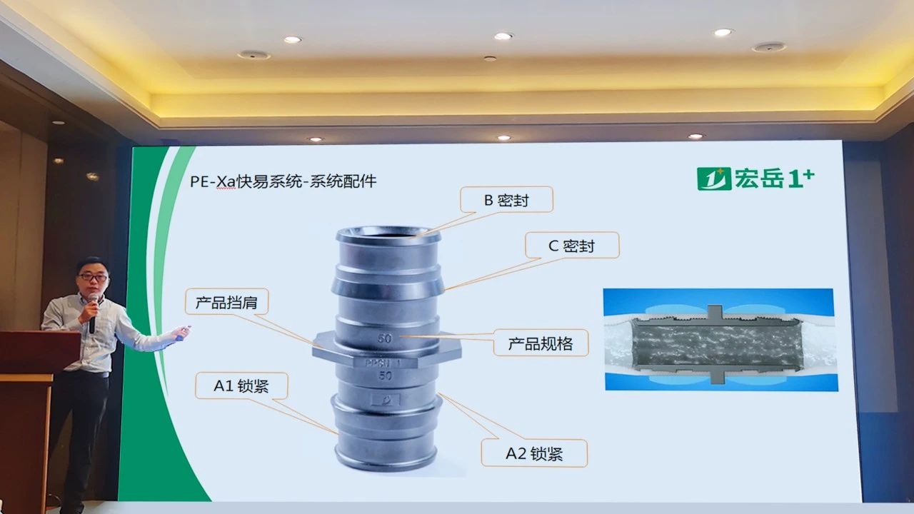 会议现场,好博体育集团高级技术工程师陈工就集团规模概况做简要介绍,并就PE-Xa快易连接系统的特点以及在两联供管路安装上的优势进行详尽讲解。现场展台重点展示了PE-Xa快易连接管道系统,参会者纷纷驻足停留咨询了解、连接实操,此系统连接凭借其简单、快捷、安全的产品及连接优势,受到了与会者们的一致好评!